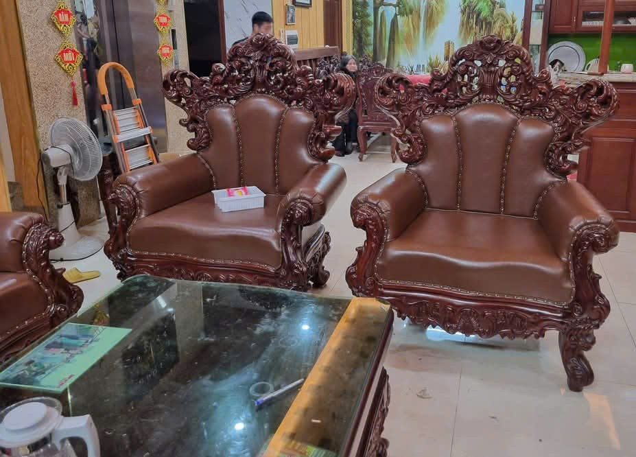 Bọc lại ghế sofa da tại nhà hà nội da bò phong cách truyền thống